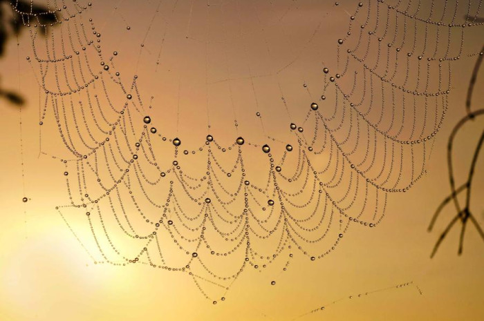 Рассвет, туман, паутинка.